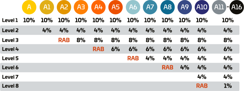 Achieve and maintain the paid rank of A16 and earn a 1% share of commissionable global sales each month you qualify.